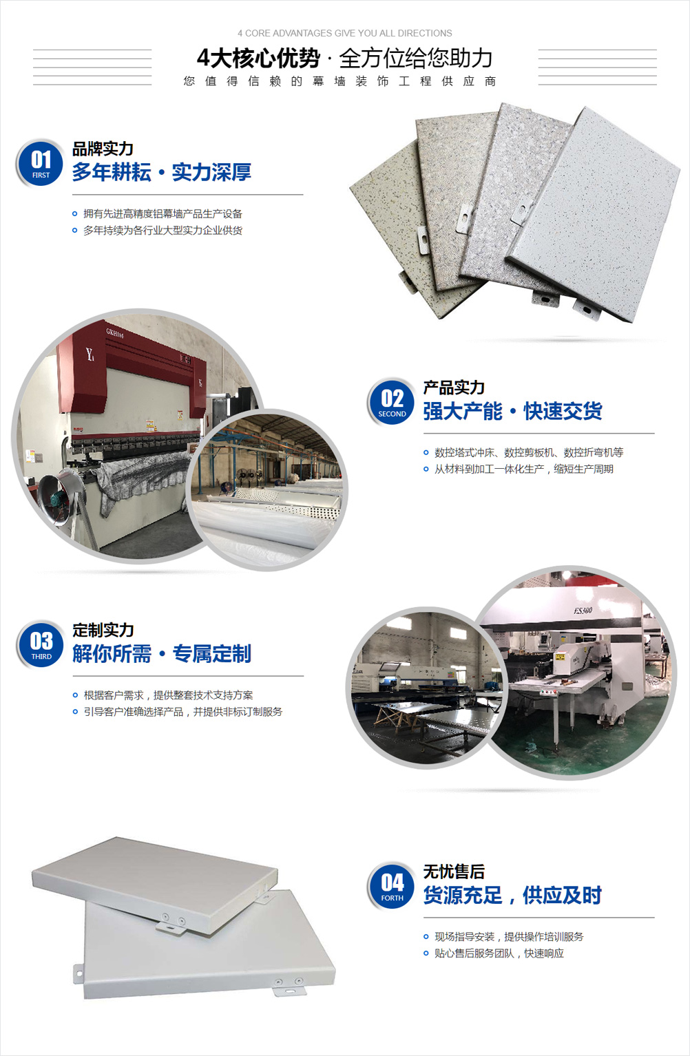 廣東申澳建材有限公司旗下品牌“申澳鼎泰”位于珠三角商貿(mào)重要經(jīng)濟(jì)區(qū)之一:佛山市南海區(qū)里水鎮(zhèn),公司擁有先進(jìn)高精度鋁幕墻產(chǎn)品生產(chǎn)設(shè)備、數(shù)控塔式?jīng)_床、數(shù)控剪板機(jī)、數(shù)控折彎機(jī)等以及進(jìn)口自動氟碳噴涂設(shè)備、是集生產(chǎn)、銷售于一體的建材公司,其主要產(chǎn)品有鋁天花和鋁幕墻2大系列,系列包含以下七大產(chǎn)品:雙曲鋁單板、弧形鋁單板 、穿孔鋁單板 、木紋石紋鋁單板、真石漆鋁單板、鋁窗花。